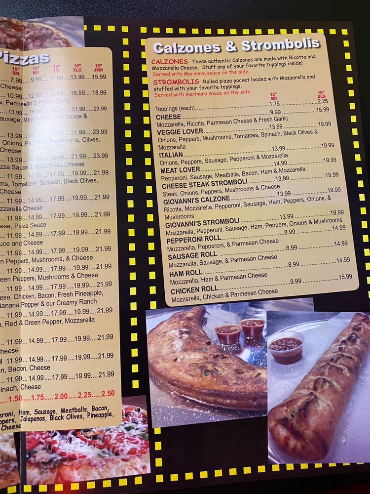 “ We love the food at Giovanni's. The garlic knots are what dreams are made of. So fresh and yummy and dripping with garlic Parmesan sauce. I personally love the dipping red sauce as well. My husband and I love the meat lovers pizza and the kiddos love the Bianca pizza without the ricotta add pepperoni. All fresh from the oven. We appreciate the refillable drinks even though we would prefer coke to Pepsi products. The desserts look amazing but we always leave to full for sweets. The staff is so courteous and helpful. Highly recommend. We also ordered a meat lovers pizza to go and added onions and another order of garlic knots and the family at home enjoyed as much as we did in the restaurant. ”